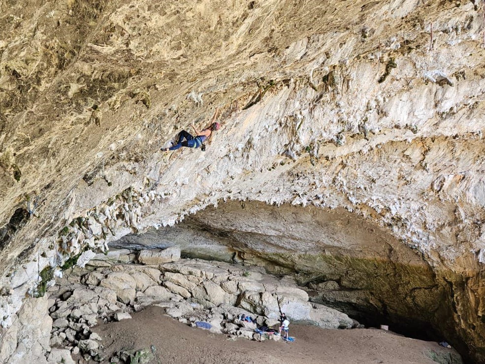 Ana Ogrinc Wagner achieves a remarkable feat by climbing Helikopter v omaki (8b) shortly after giving birth to her twins less than two years ago. This impressive ascent took place in the expansive cave of Osp. It’s worth noting that her husband also conquered the same route a few weeks prior. You can find more information about this in the related news.